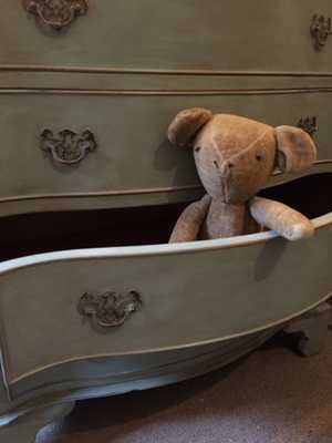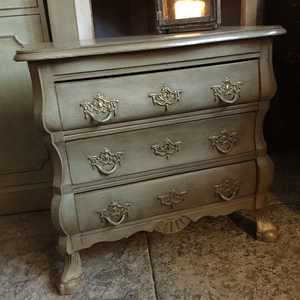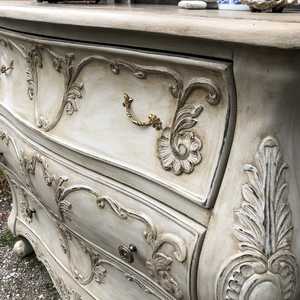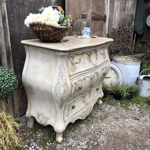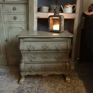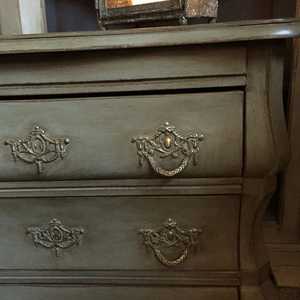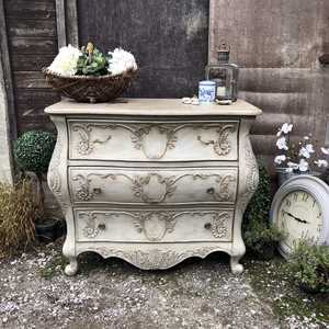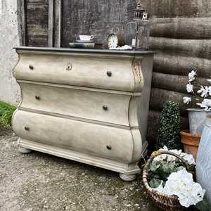 This magnificent French Bombe style chest of drawers is good enough to eat! With its elegant shape and beautiful details is it just gorgeous. Hope to find something similar soon to transform, but they are quite rare.