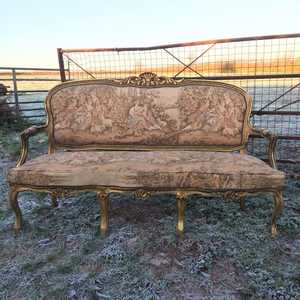 Vibrant Turquoise Cabinet! Rustic Old Gate Leg Table! Louis XV Style Gilded Settee!