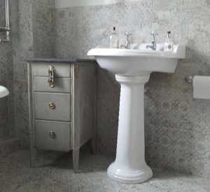 If you are lucky enough to have a huge bathroom or a smaller one, it does not matter. Charm is not about size, it is about making the space work for you. Adding a wash stand / chest of drawers as a basin base will add that little extra - be it Gustavian Country charm or Country Farmhouse, the result will be amazing.