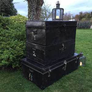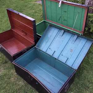 Would it not be wonderful if these well travelled trunks could tell us all about their journeys! We found a news paper from Ceylon in one of them and the large trunk has stencils reading "Camp Post Office Belgium".
