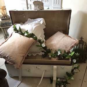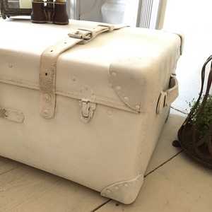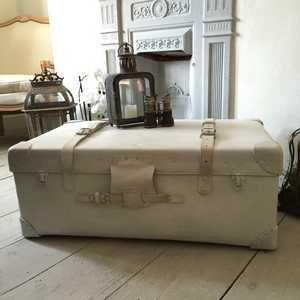 Gorgeous vintage romantic luxurious white hand painted and waxed suitcase trunk. Use it as a coffee table or for storage. Find more information about our painted and unpainted items for sale in our online shop.