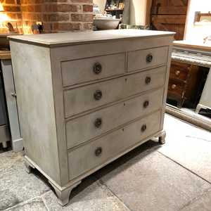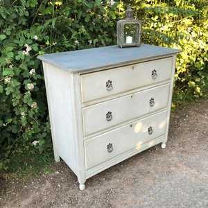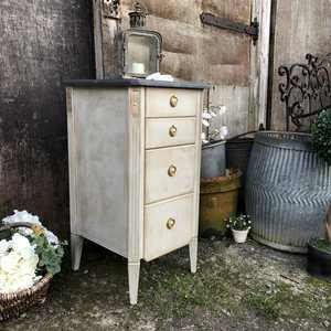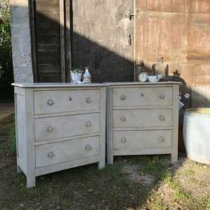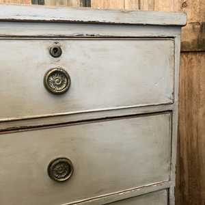 Love the Gustavian and French look? This gorgeous matching pair of grey hand painted chest of drawers has got it all. Less is more!