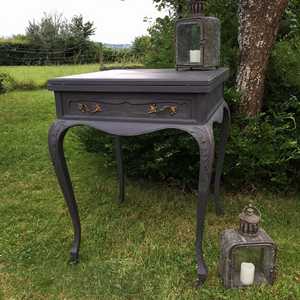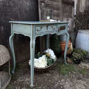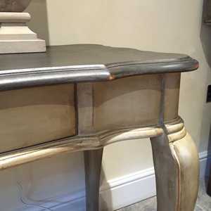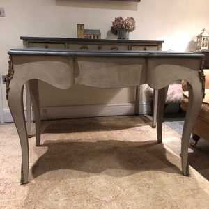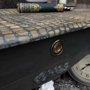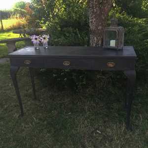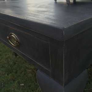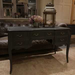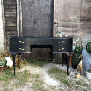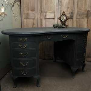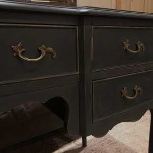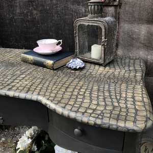 This black hand painted French Country style hand painted writing desk is simply unique! With its crocodile skin patterned top and beautiful cabriole leg base it will be perfect if you are looking for something unique and stunning for your home. If you don't need a desk, why not use it as a dressing table or a double sink basin base!