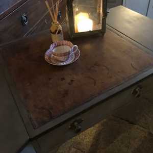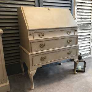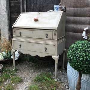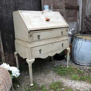 Found this unloved writing desk. It was terribly sad looking, but I could see the potential. After a good clean up I painted it in Annie Sloan's French Linen, which is a sophisticated grey colour with a touch of brown.