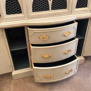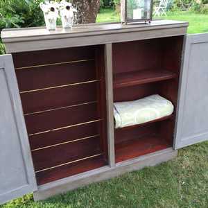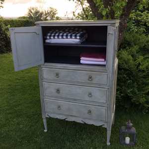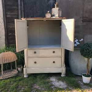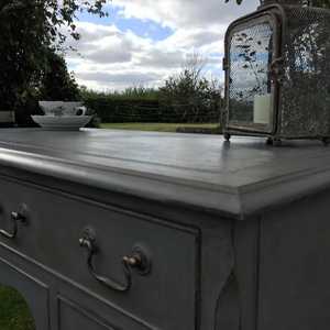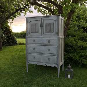 This beautiful grey hand painted former dressing table base with its gorgeous details, would add charm and character to your home and even make your TV look good! Perfect both in your bedroom and in your living room.