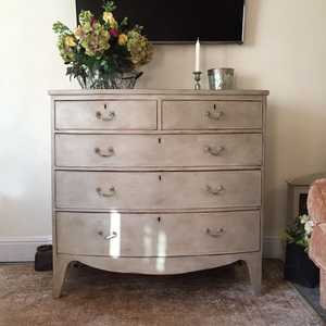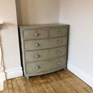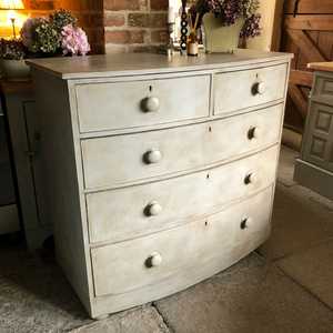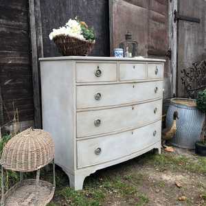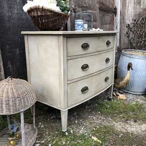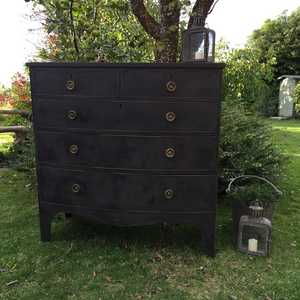 This absolutely gorgeous black hand painted Victorian/Edwardian bow fronted chest of drawers is now available in our online shop.