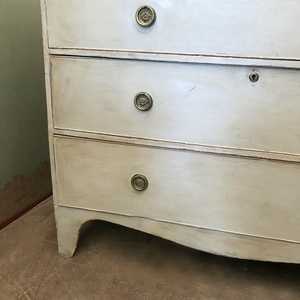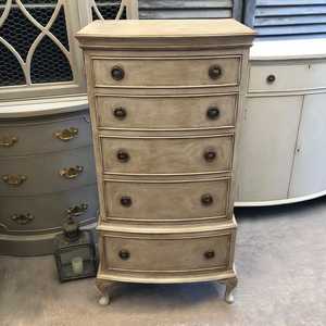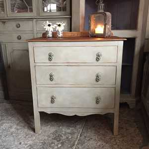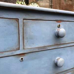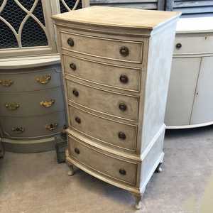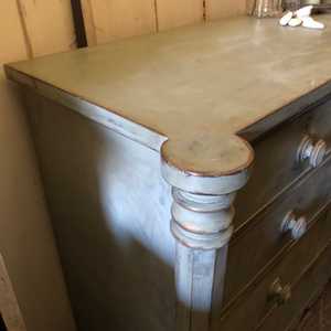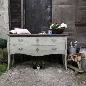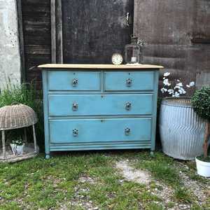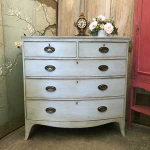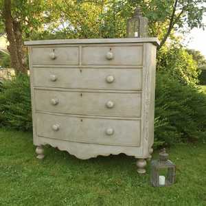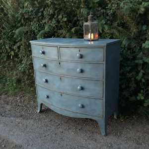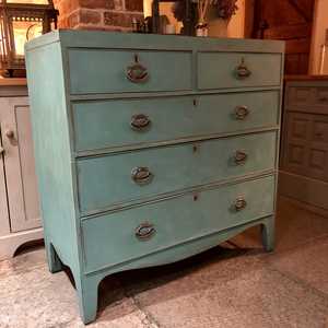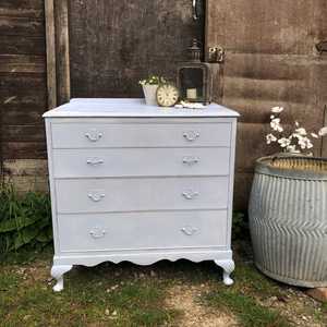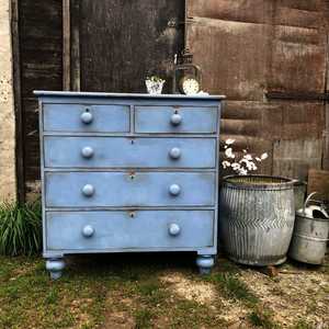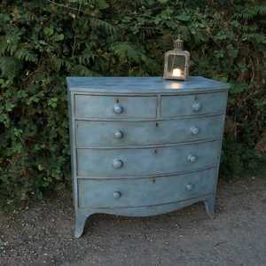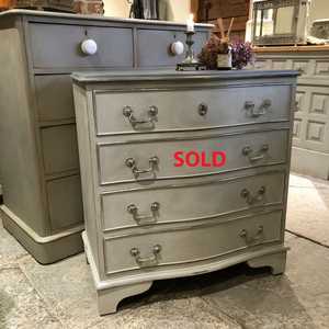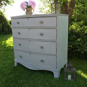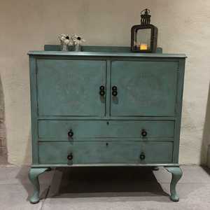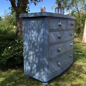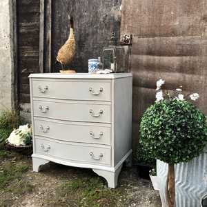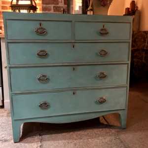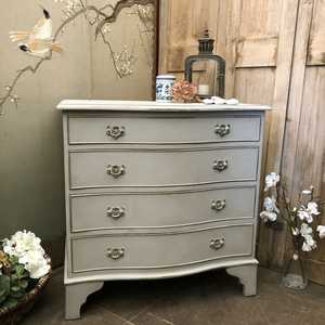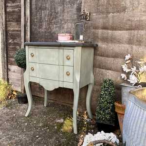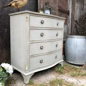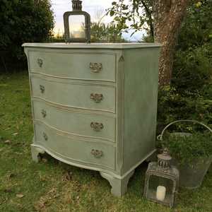 I just had to paint this gorgeous little vintage chest of drawers in Duck Egg Blue. With its pretty brass handles and beautiful serpentine shape it would look lovely in a hallway, a child's bedroom or as a tall bedside table.