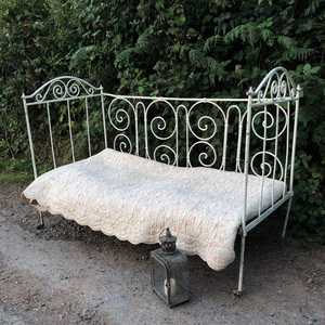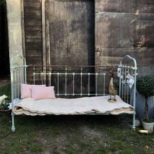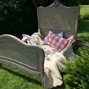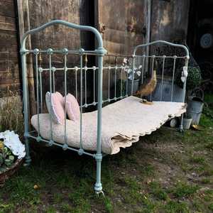 When I came home with this French metal bed it was in a boring white. I normally like these bed in white, but could see that this needed a special treatment, so I painted it in duck egg blue or "oeuf de canard bleu" that the colour would have been called in the bed's home country France (somehow it does not sound as good...). The result was absolutely amazing! I absolutely love it and this is not going to be a one off - the next bed I find will get the same treatment...