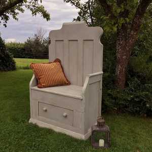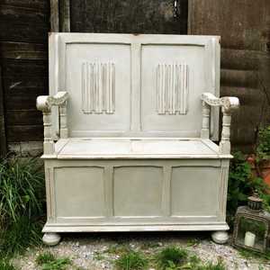 Today the sunny weather has turned to rain, so a perfect excuse to browse through our online shop for gems to add charm & character to your home. A beautiful large grey painted French Country Bombe style chest of drawers, a stunning coal black kidney shaped dressing table with gold details and a gorgeous rustic grey painted Country Farmhouse settle. Plenty more in our shop!