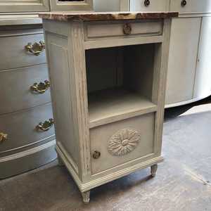 My client Marcia made my day last Sunday. She had just had a Gustavian style bedside cabinet delivered and she was so happy with it that she sent me a photo of it in situ in her bathroom.