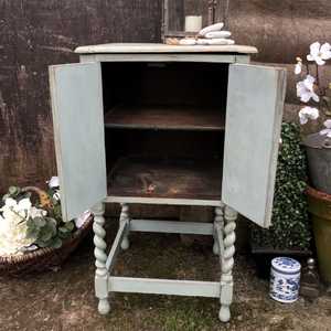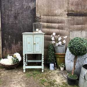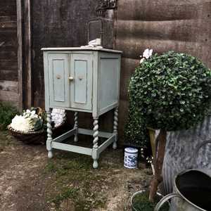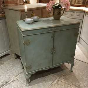 A beautiful Victorian chest of drawers, hand painted in a gorgeous Greek blue, waxed and distressed. An unusual shoe storage cabinet and a pretty Edwardian/Art Nouveau wash stand base - perfect for your bathroom!