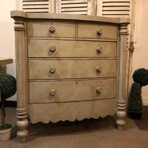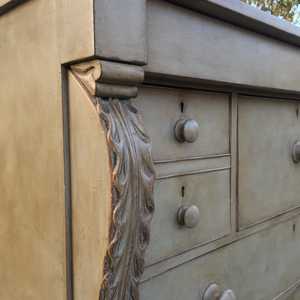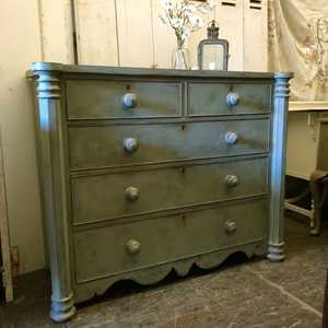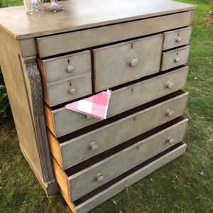 This magnificent piece of furniture - a Victorian grey hand painted Scotch chest of drawers has nine (9!) drawers. As with most antiques, it is hand made and although it is a large, heavy piece of furniture, it still manage to look graceful and elegant.