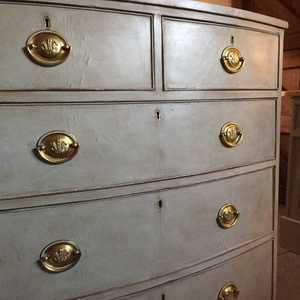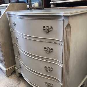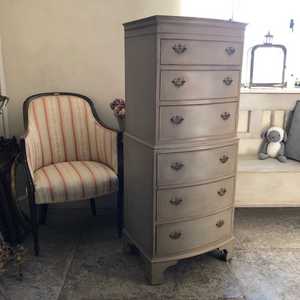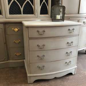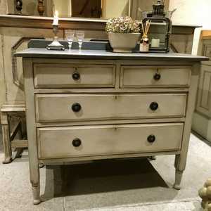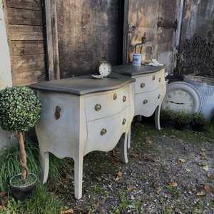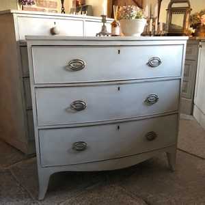 I can never get enough of the crisp freshness of Gustavian Country style and I know that many of our clients share my love for the style. We have just added these two lovely serpentine chest of drawers painted in Paris Grey with a touch of gold. .