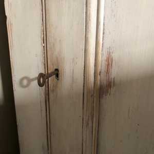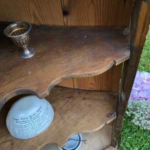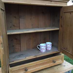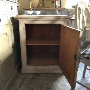 This old pine cupboard cabinet has so much character and charm. With its neat proportions (only 178 cm high) it will fit in cottage or castle alike. If you are looking for something quaint to add character to your bathroom - then this is it!