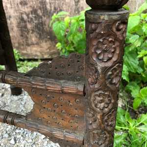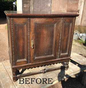 My husband liked the hand painted flowers etc. and did not want me to paint them over, but although the painti work was lovely, the top it was quite damaged and I did boy this piece because I had a different finish in mind.