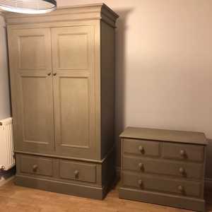 This gorgeous set (chest of drawers & mirror) was sourced and hand painted to our client's request. I am very pleased with the result, but I did honestly struggle to finish it in time as I had a horrid cold, which made me work in slow motion instead of my normal speed, but I just managed! Finished 21.00 the day before our courier was picking it up early in the morning the following day!