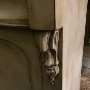 I do most of the buying, but once in a while my husband finds real gems that I overlook. One of them was this 1930's Tudor style dresser/cabinet. It was all very dark and gloomy, but we could see the potential. I quickly started to paint it - eager to see the end result - and I was absolutely taken aback when I saw it in its painted and aged full glory. It is absolutely stunning!