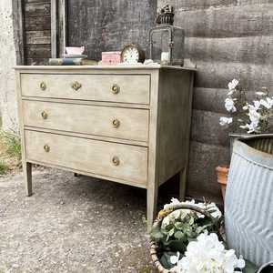 I have been painting with Annie Sloan's chalk paint since 2013 and I love it! It is perfect for the style of Crown Cottage Somerset, as you can use it in so many ways and it is so economical. As you probably already know by visiting this website etc, I love the Swedish Gustavian Country style's "less is more", which has become my mantra when it comes to antiques/vintage finds and furniture painting.