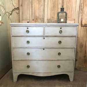 We absolutely love this antique Doctor's bed that would be a perfect conversation piece as buffet side table in your dining room. The always so popular grey hand painted antique Regency bow fronted mahogany chest of drawers - perfect if you love the elegant simplicity of the Regency & Gustavian period.