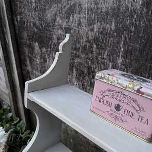This charming pine wall shelf unit has been hand painted in Annie Sloan's Paris Grey. We used our artisan ageing technique to enhance the country charm and add a rustic edge to this piece.
