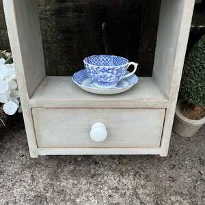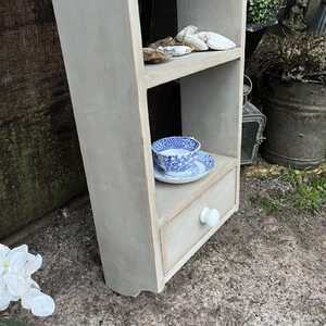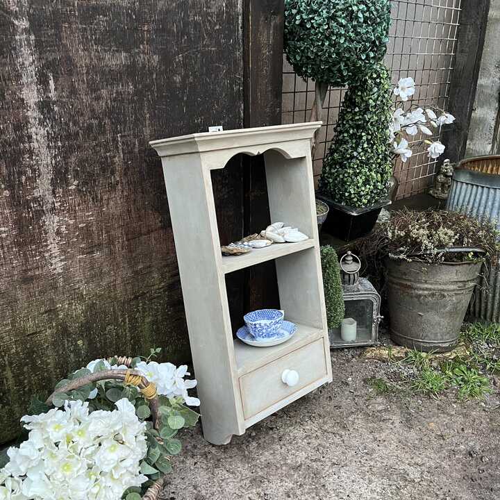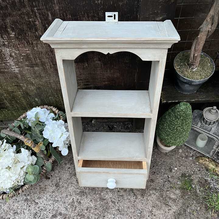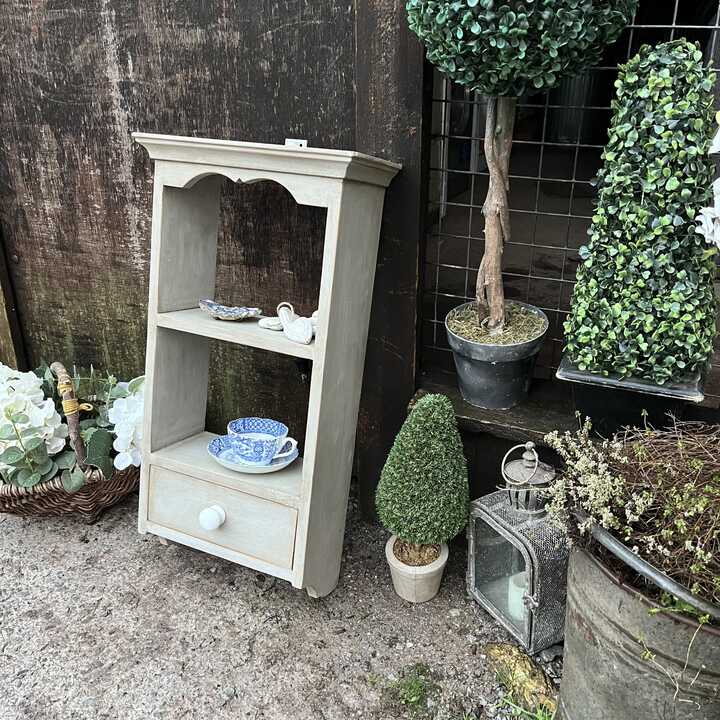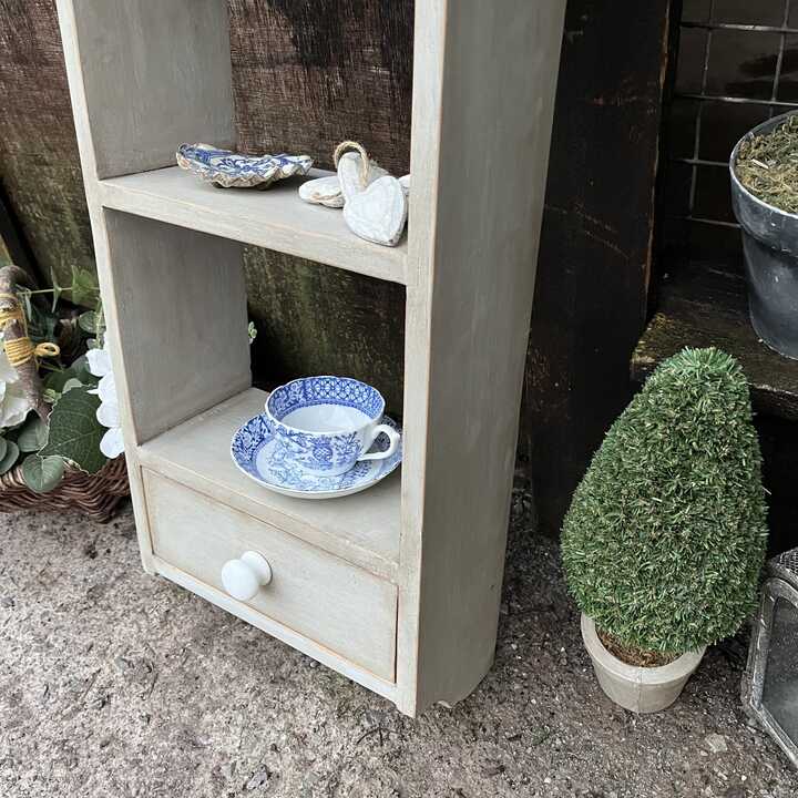 Pretty Grey Hand Painted Wall Mounted Wall 2 Shelves Storage Unit With Drawer