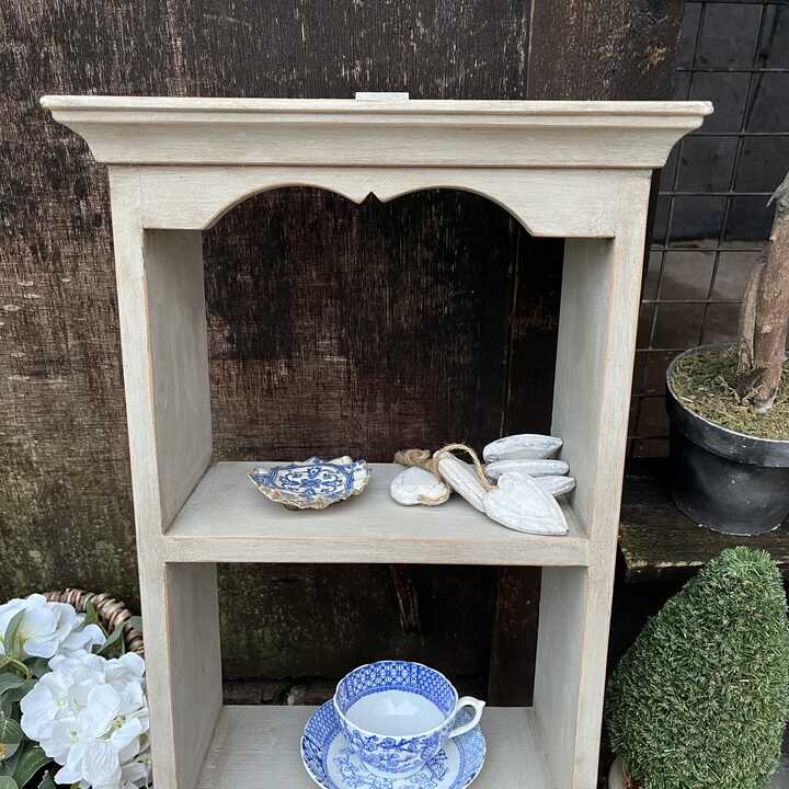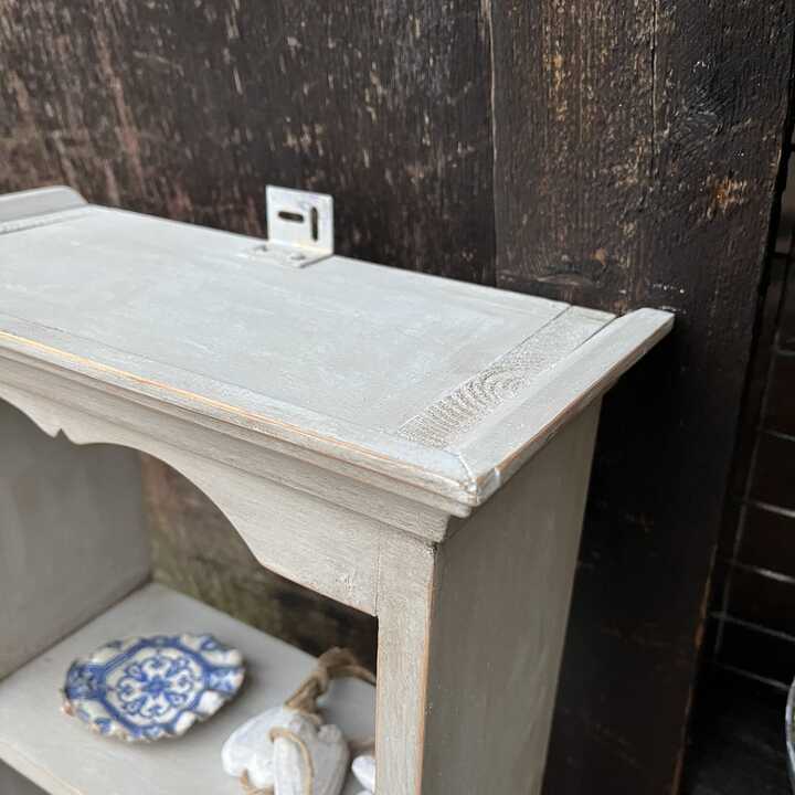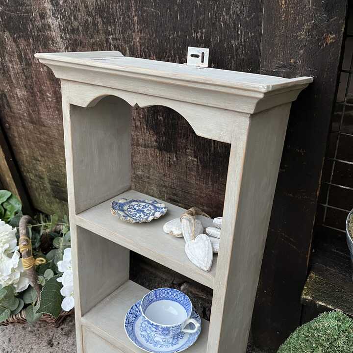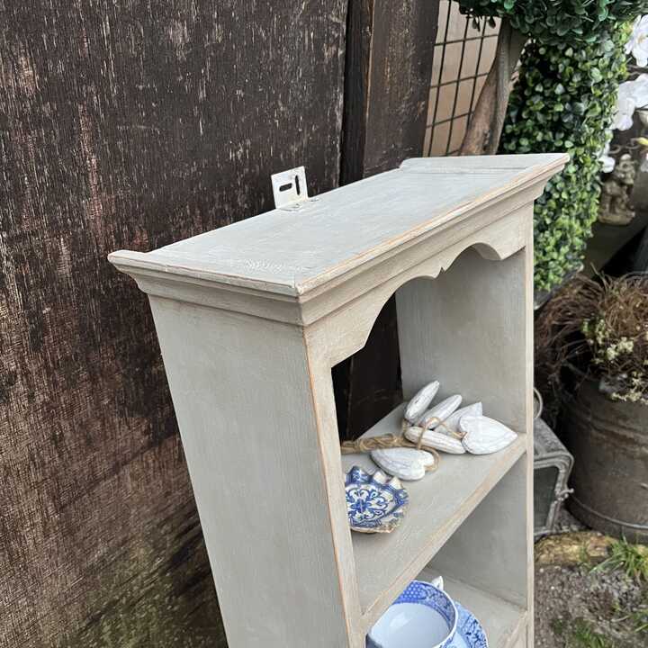 This charming pine wall shelf unit has been hand painted in Annie Sloan's Paris Grey. We used our artisan ageing technique to enhance the country charm and add a rustic edge to this piece.