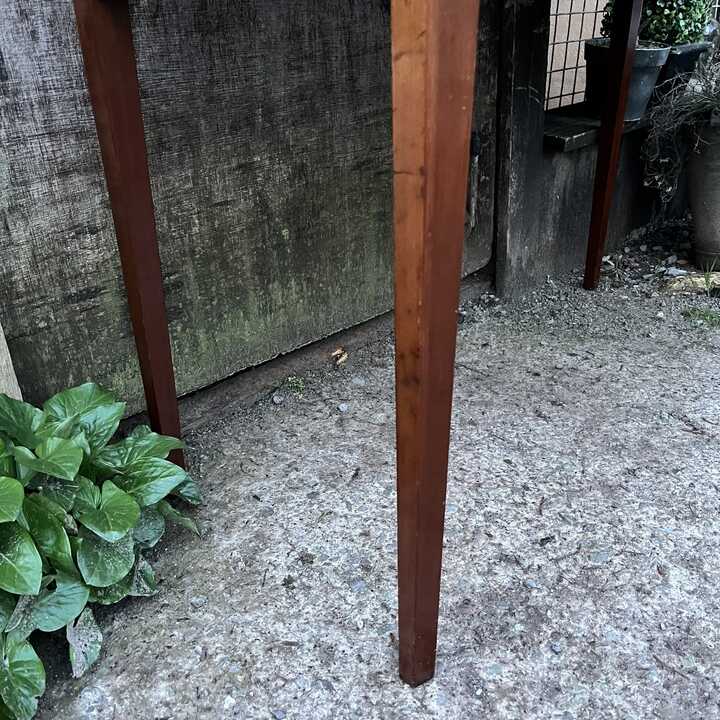 It is in a good antique condition. As with most antique/vintage items, there are some marks, dents etc. which, in our opinion, is what makes antique/vintage furniture so charming and characterful. Please see photos.