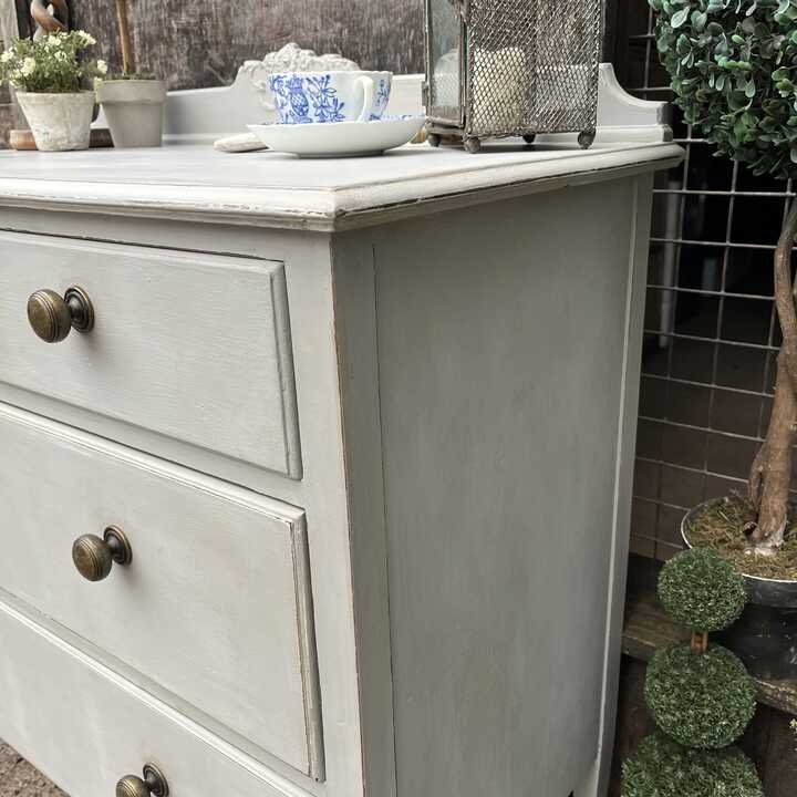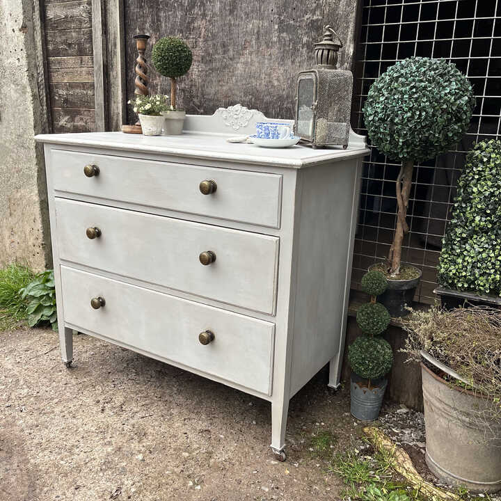 Romantic Country Style Grey Hand Painted Vintage Three Drawer Chest Of Drawers