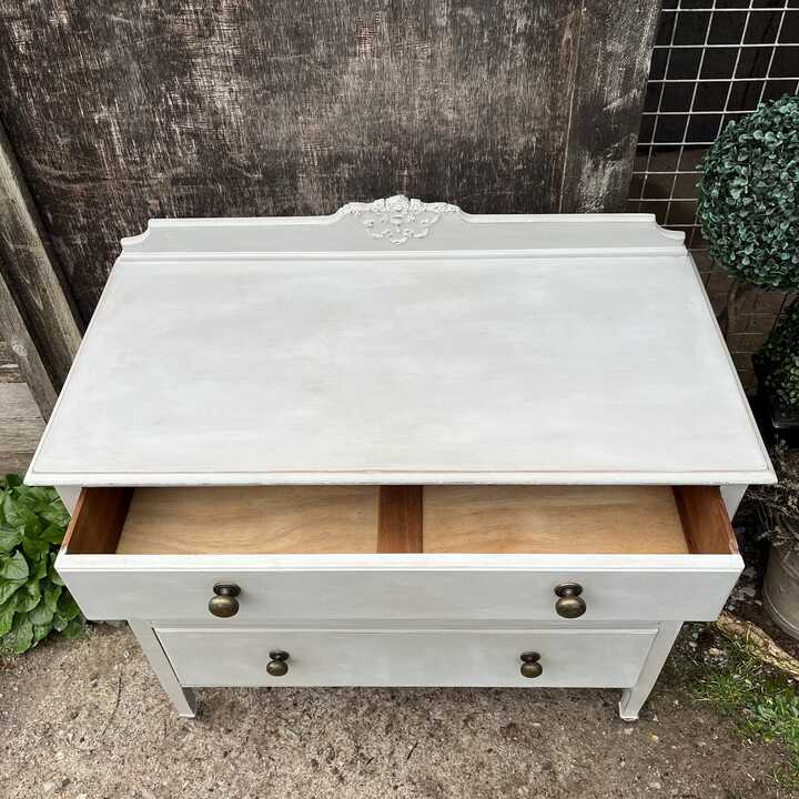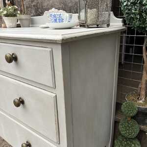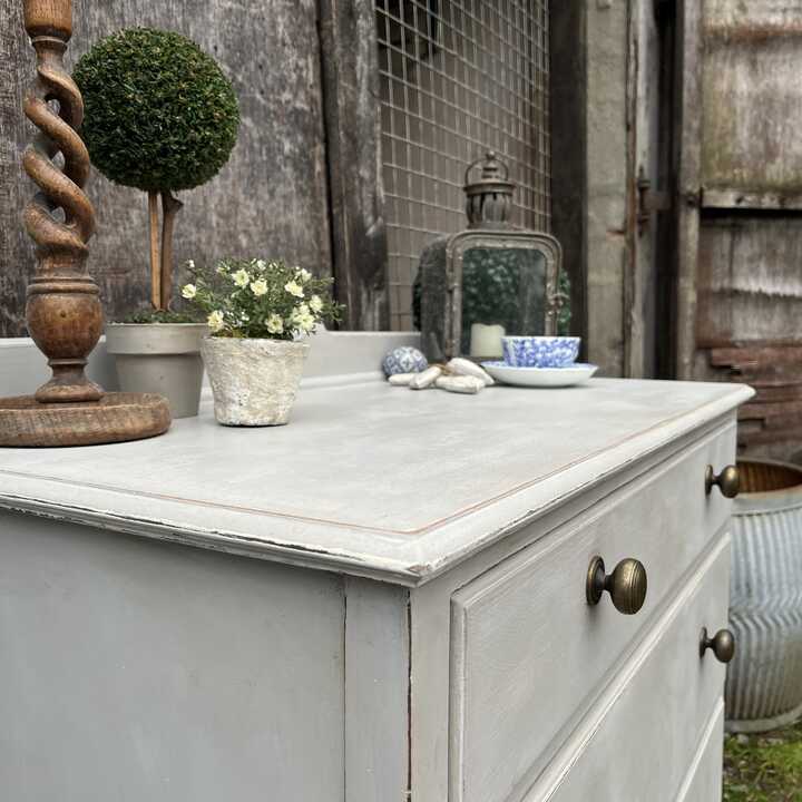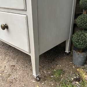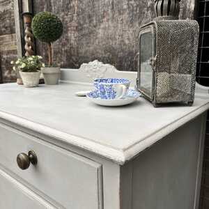 This vintage charming chest of drawers has been hand painted in Annie Sloan's Paris Grey. Using our artisan ageing technique, we have aged distressed it - enhancing the style and character of this piece.
