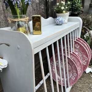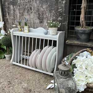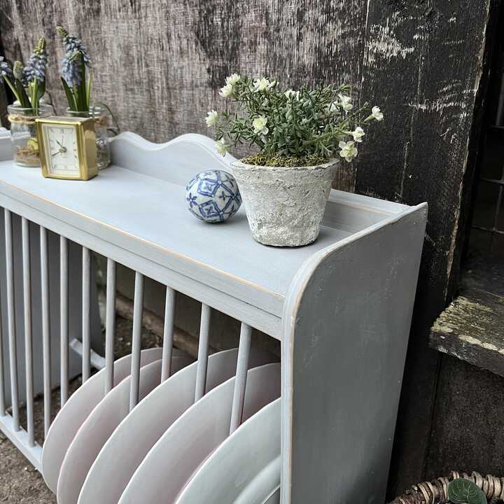 This gorgeous plate rack has been hand painted in Annie Sloan's Chicago Grey. We have used our artisan ageing technique to enhance the charm of this piece.