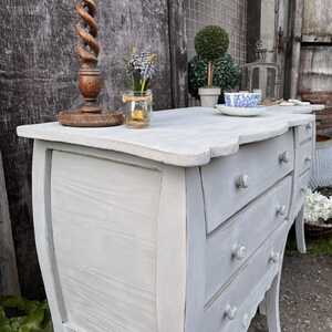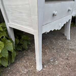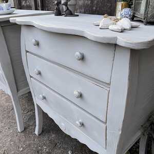 This gorgeous matching pair of bedside tables / chest of drawers would look stunning in your bedroom, living room etc. Their rustic hand painted distressed charm combined with their very pretty shape is just adorable.