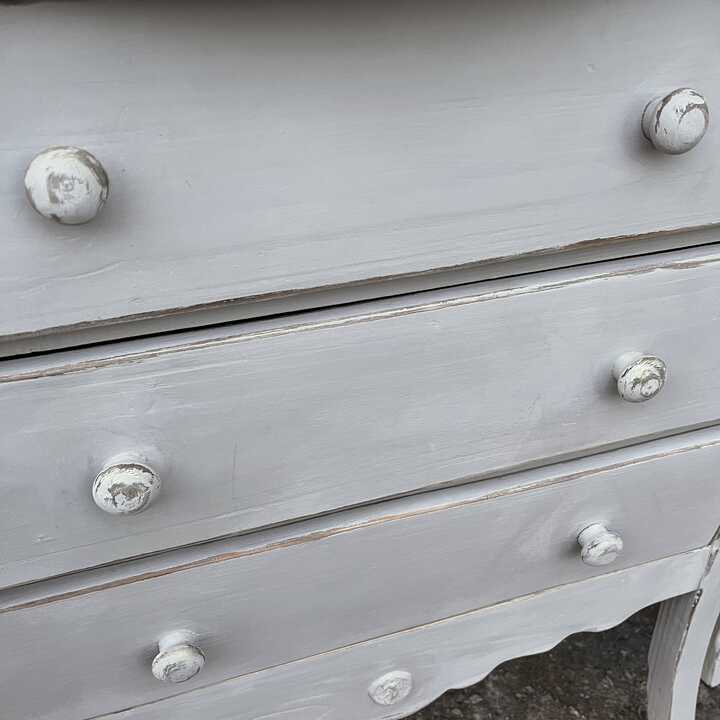 Each piece has three drawers with knob handles. Perfect pair if you are looking for something with a really rustic French Country Brocante style. They are just gorgeous.