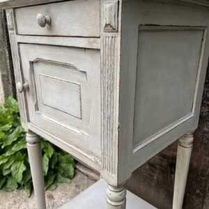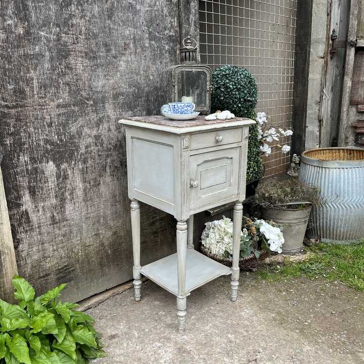 Grey French Painted Country Vintage Antique Pot Cupboard Bedside Table Marble Top
