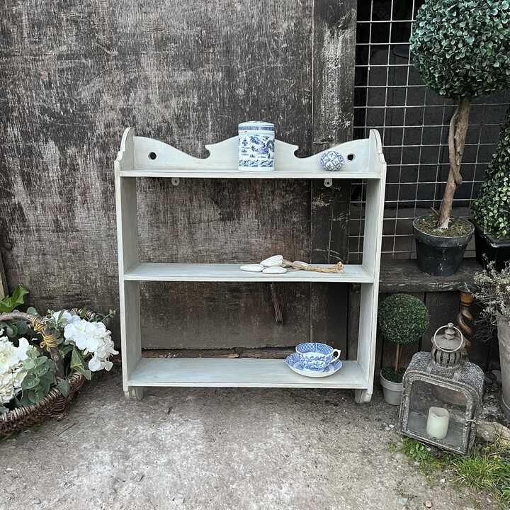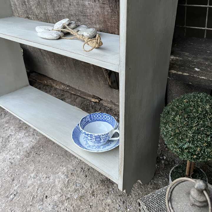 This charming pine wall shelf unit has been hand painted in Annie Sloan's Chicago Grey. We used our artisan ageing technique to enhance the country charm and add a rustic edge to this piece.