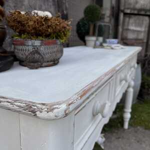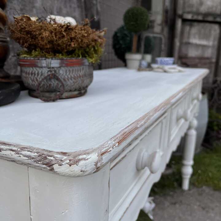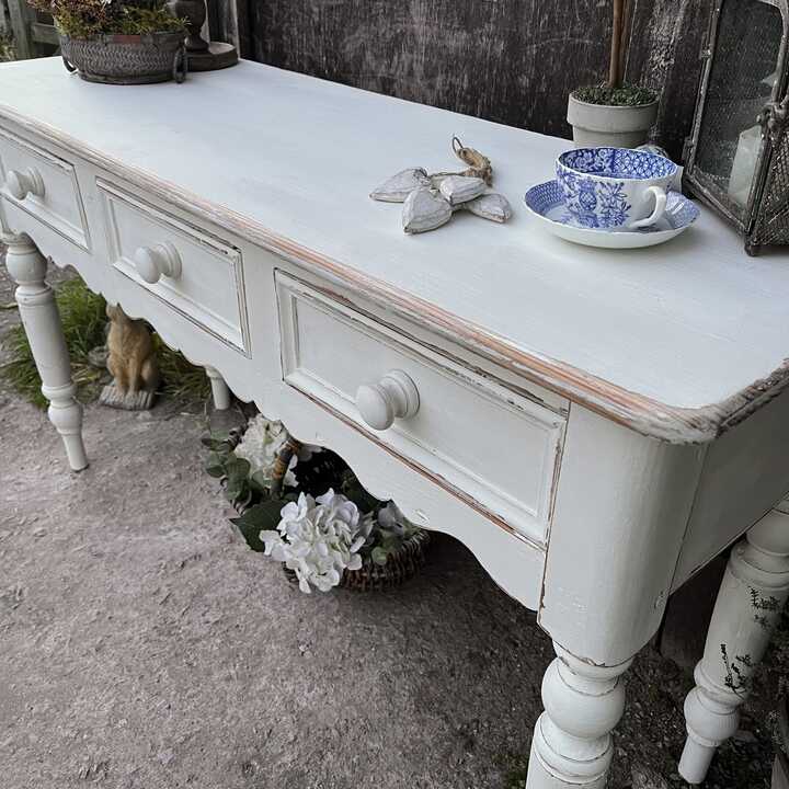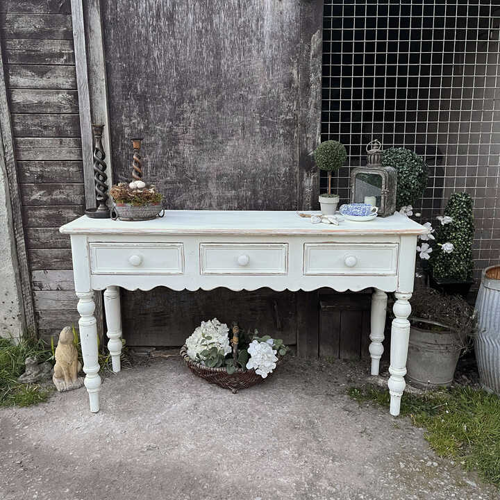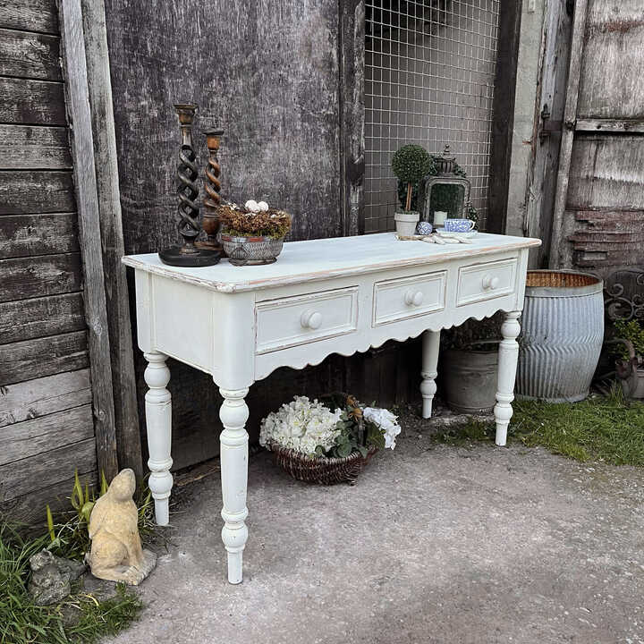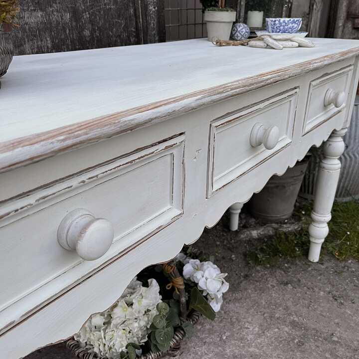 Gorgeous Brocante White Hand Painted Rustic French Country Style Console Table / Side Table With Three Drawers