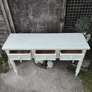 White Hand Painted Rustic 3 Drawer French Country Style Console Table Side Table