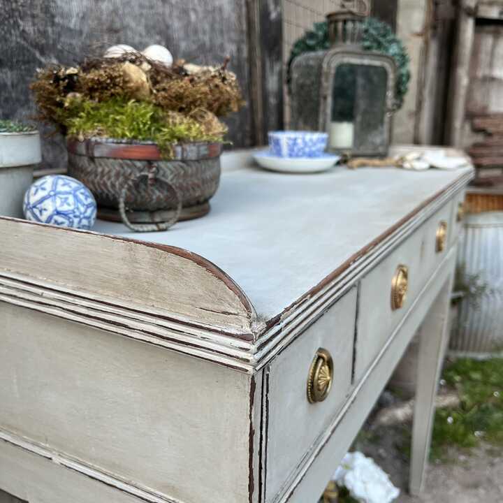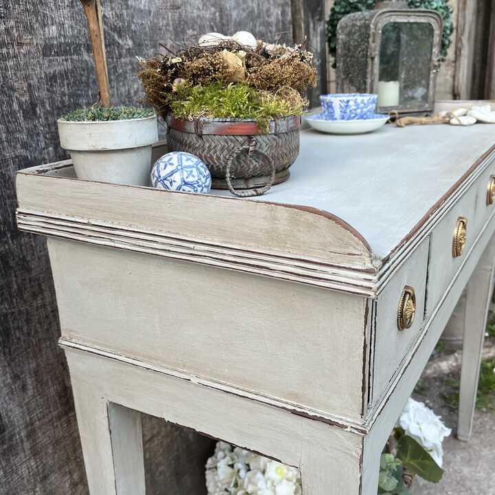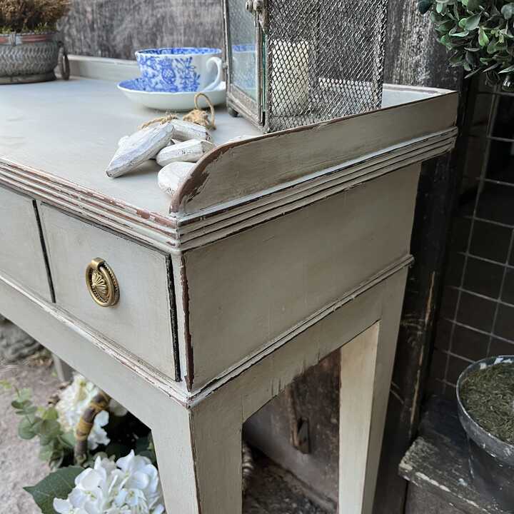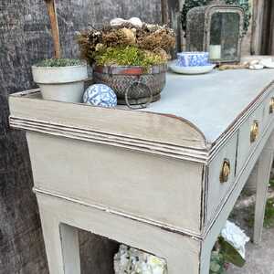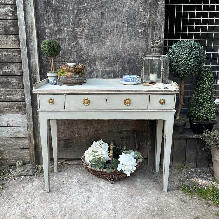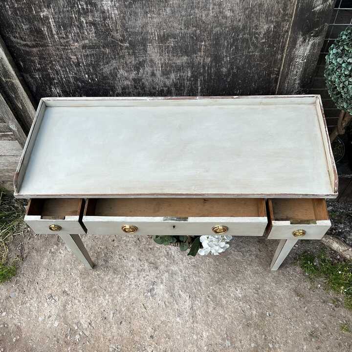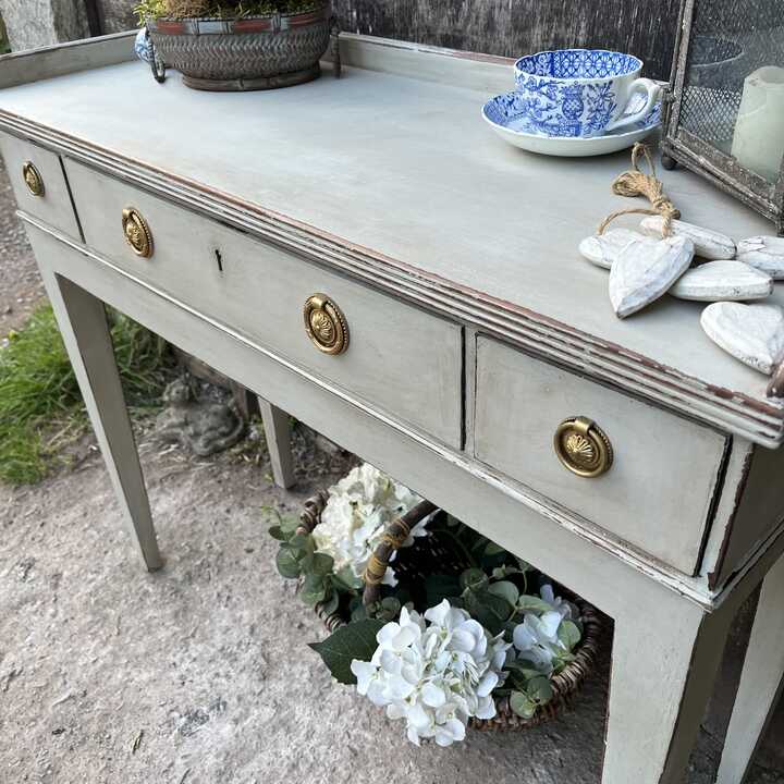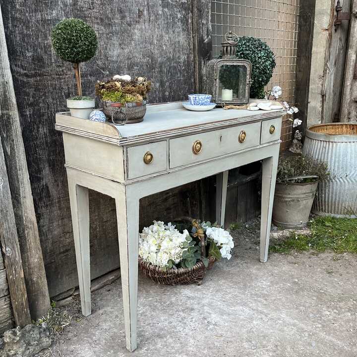 Grey Hand Painted Rustic Gustavian Country Style Antique Console Dressing Table