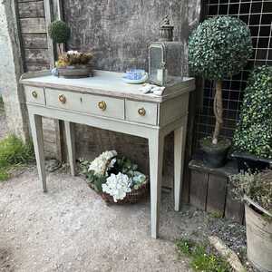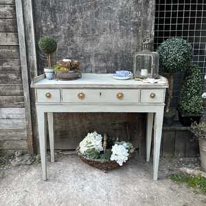 Charming Rustic Gustavian Country Style Antique Grey Hand Painted Console Table Dressing Table Desk