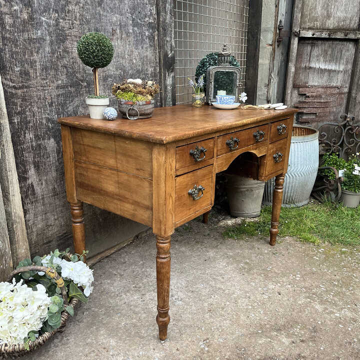 Charming Rustic Edwardian Antique Desk / Console Table / Dressing Table With Lots of Patina