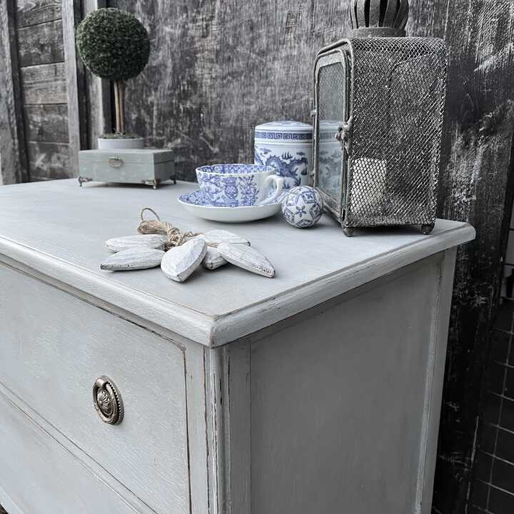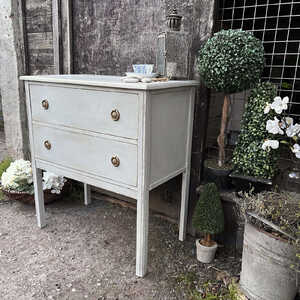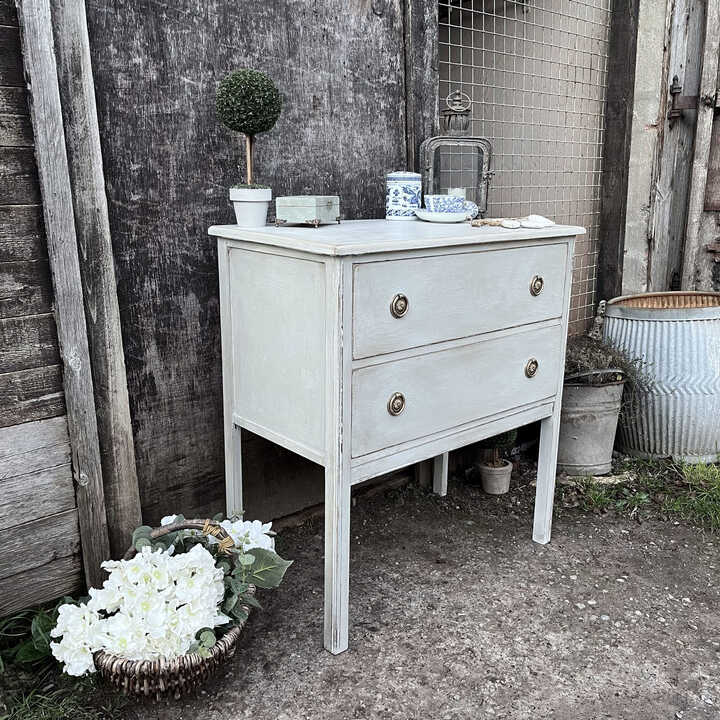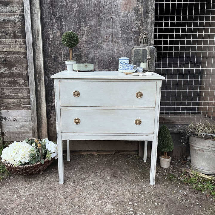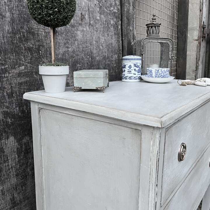 We just love the rustic ”less is more” simplicity of the Swedish Gustavian Country style, which looks just as right in a contemporary home as in a period property. It has two spacious drawers with ornate round drop handles. This piece is perfect as a chest of drawers in your bedroom or as a storage side table in your living room / hallway.