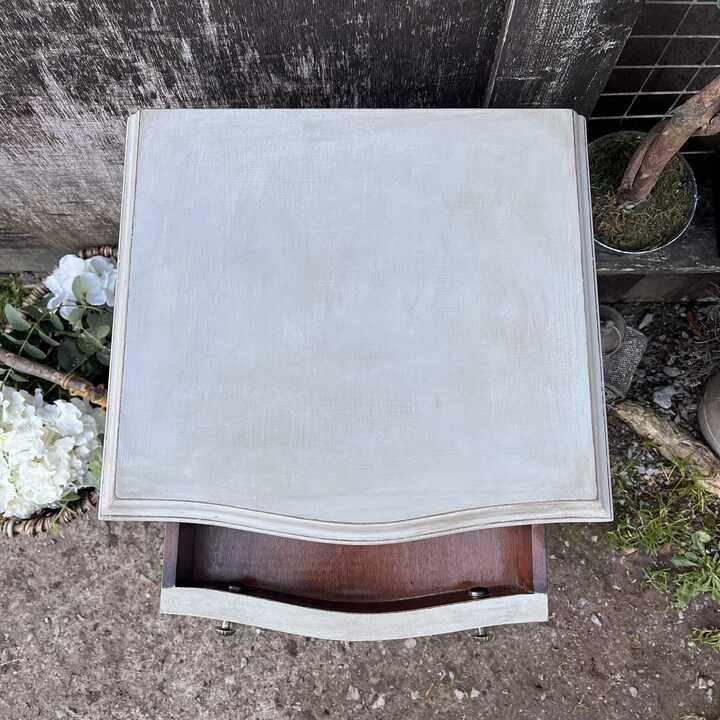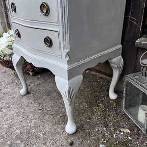 This pretty bedside cabinet has been hand painted in Annie Sloan's Paris Grey. Using our artisan ageing technique, we have aged distressed it, enhancing the pretty details on this piece.