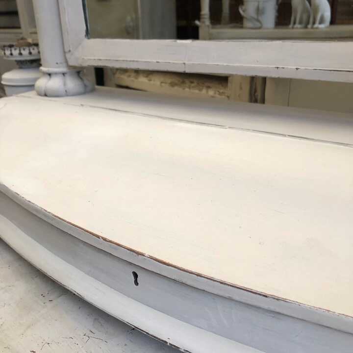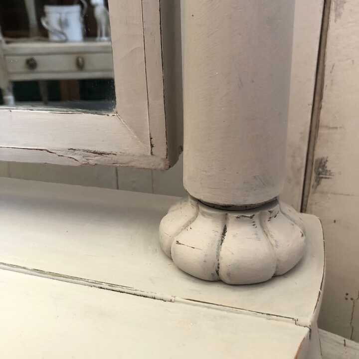 This really large table swing mirror is for someone that appreciates the rustic country brocante style as it has a lot of charm and character, but is not in a brand new condition - which is the reason why we love this mirror. It would be gorgeous on top of a cabinet / chest of drawers - especially if the cabinet / chest of drawers is painted in the same colour and style.