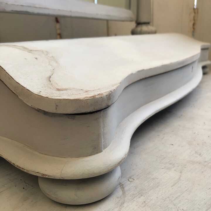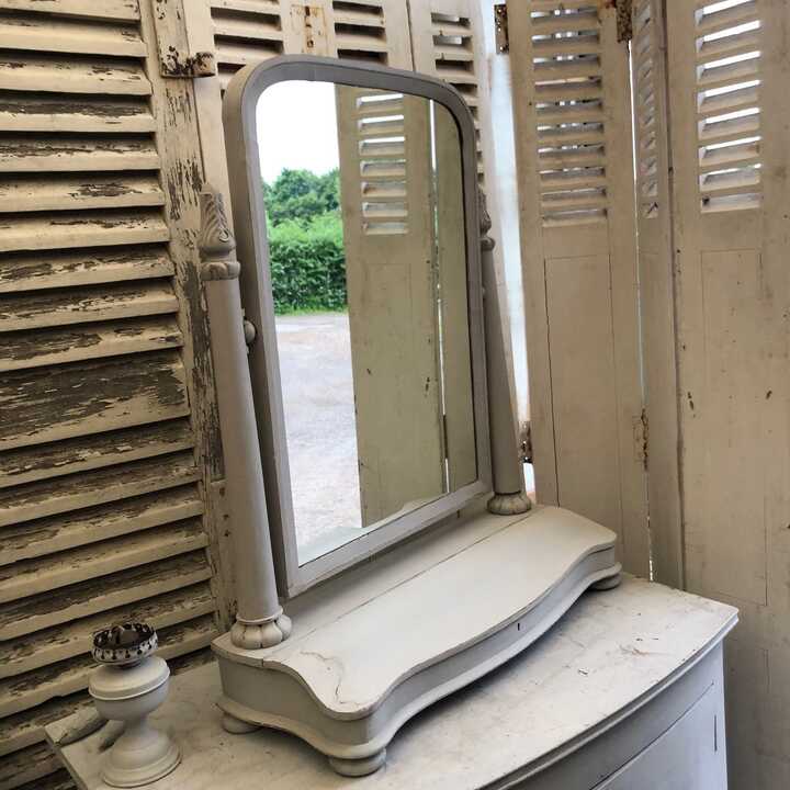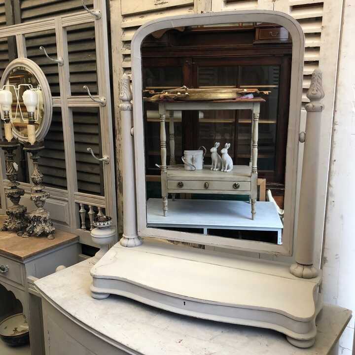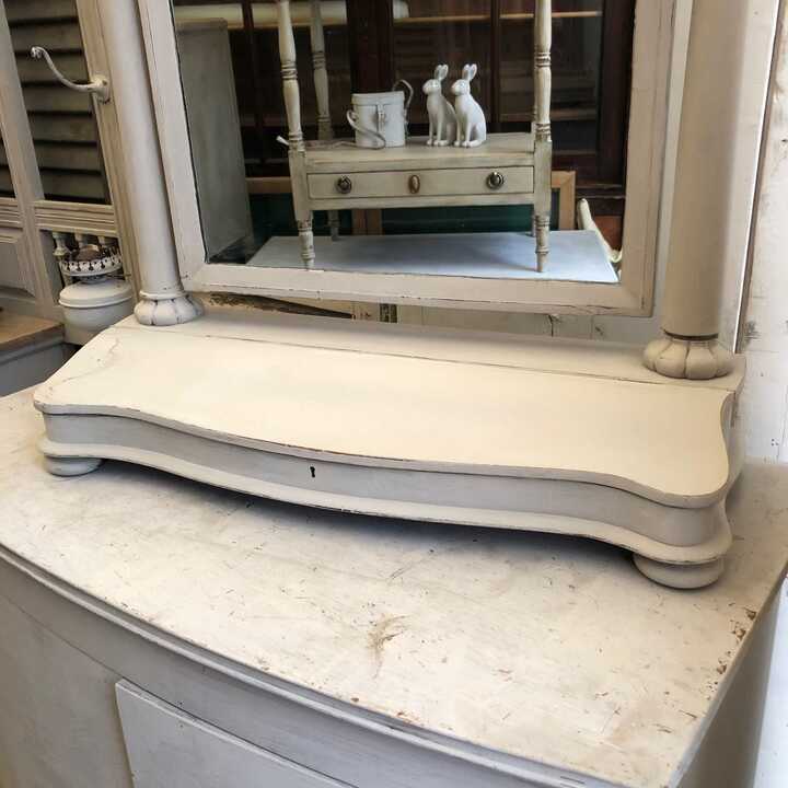 Large Beautiful Rustic Light Grey Hand Painted Antique Victorian Country Brocante Table Swing Mirror, Storage Compartment With Lid