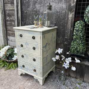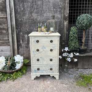 This faux mahogany chest of drawers started its life as a Hifi cabinet, that now has been hand painted cream in a mix of Annie Sloan's chalk paint. Using our artisan ageing technique, we have aged it, enhancing the rusticness and uniqueness.