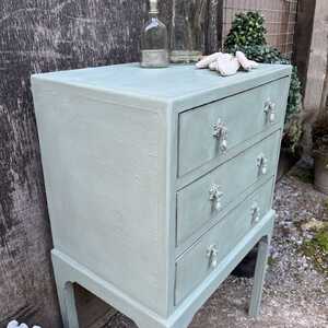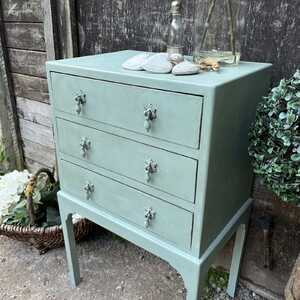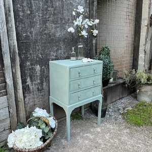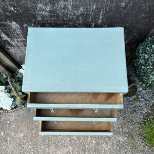 Duck Egg Blue Hand Painted Vintage 1930s Retro Style 3 Drawer Bedside Table