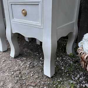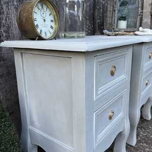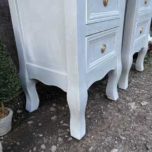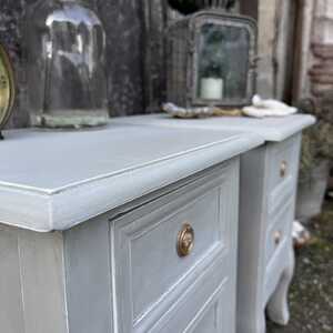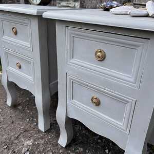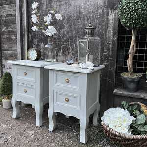 This gorgeous pair of pretty bedside tables has been hand painted in Annie Sloan's Paris Grey. Using our artisan ageing technique, we have slightly aged distressed them, enhancing the charm and character of the pair.