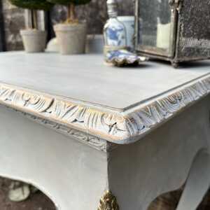 Gorgeous Grey Hand Painted Vintage Rustic French Country Chic Style Ornate Console Table / Side Table