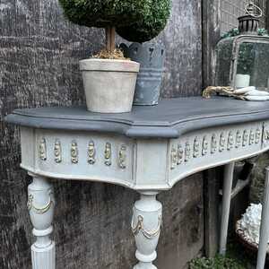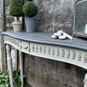 Grey Painted French Country Gustavian Style Ornate Vintage Console Hall Table