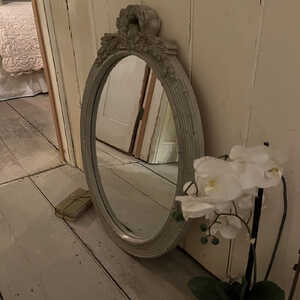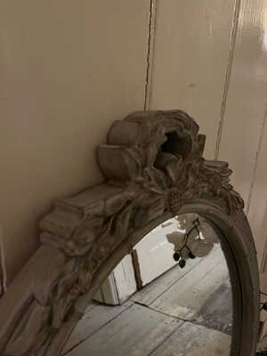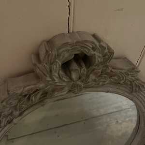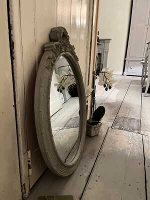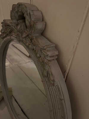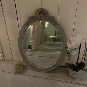 Oval French Country Style Grey Hand Painted Oval Ornate Wall Mounted Bevelled Mirror