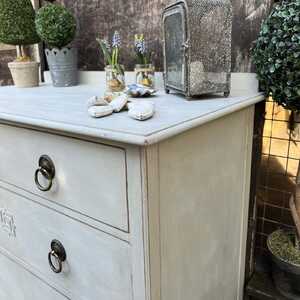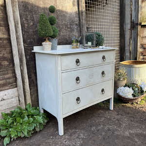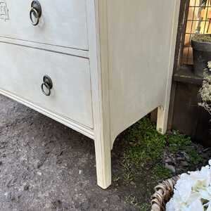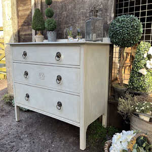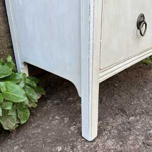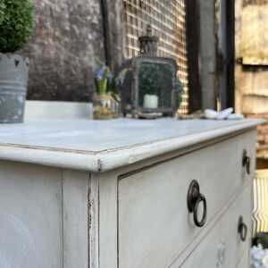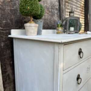This elegant chest of drawers has been hand painted in Annie Sloan's Paris Grey. Using our artisan ageing technique, we have aged distressed it - enhancing the sleek design of this piece.